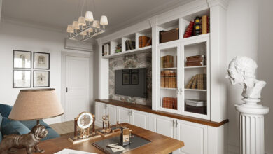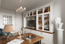 Такое рабочее место удобно оформить на утепленной лоджии. Но можно поставить стол и в комнате перед окном или вдоль стены. Во втором случае выбирайте столешницу глубже 50 см, чтобы взгляд не упирался прямо в стену.