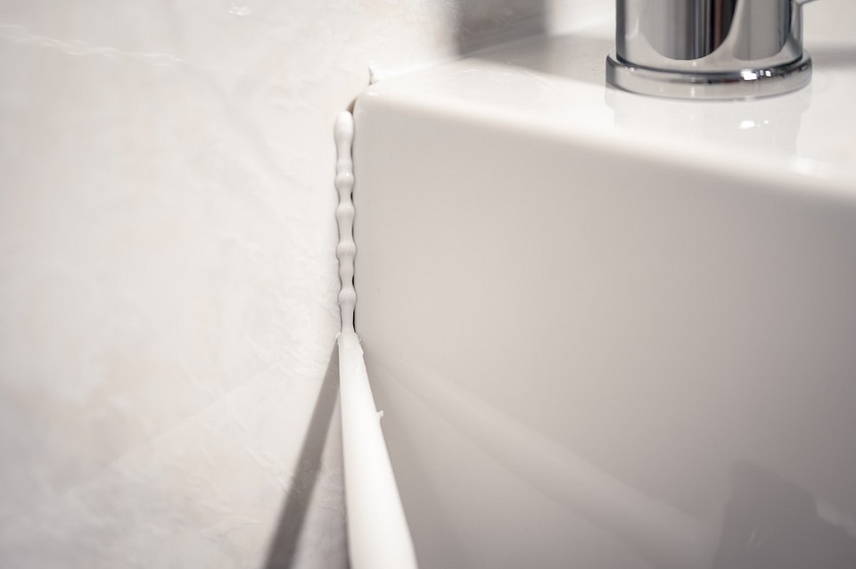 - При монтаже сантехники, чтобы сделать ее примыкание к стенам или к другим предметам мебели почти идеальным. Чаще всего гидроизолируют таким способом ванну и раковину.