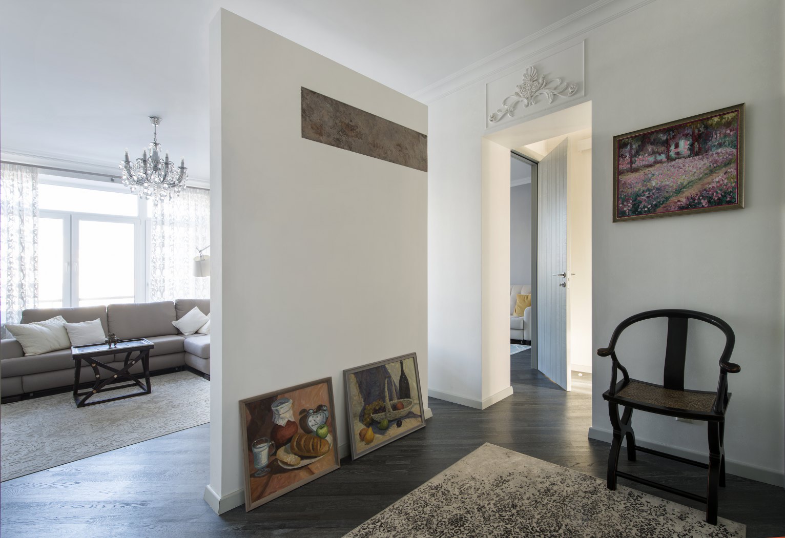 Жильё, владелице которого понадобилась помощь в его переустройстве, располагается в центре столицы, в старом доме, построенном в конце 50-х годов прошлого столетия. Помимо местоположения среди плюсов трёхкомнатной квартиры — высокие потолки (более 3 м), а также всего одна капитальная стена. Все прочие перегородки являлись ненесущими, что существенно упростило перераспределение объёмов.